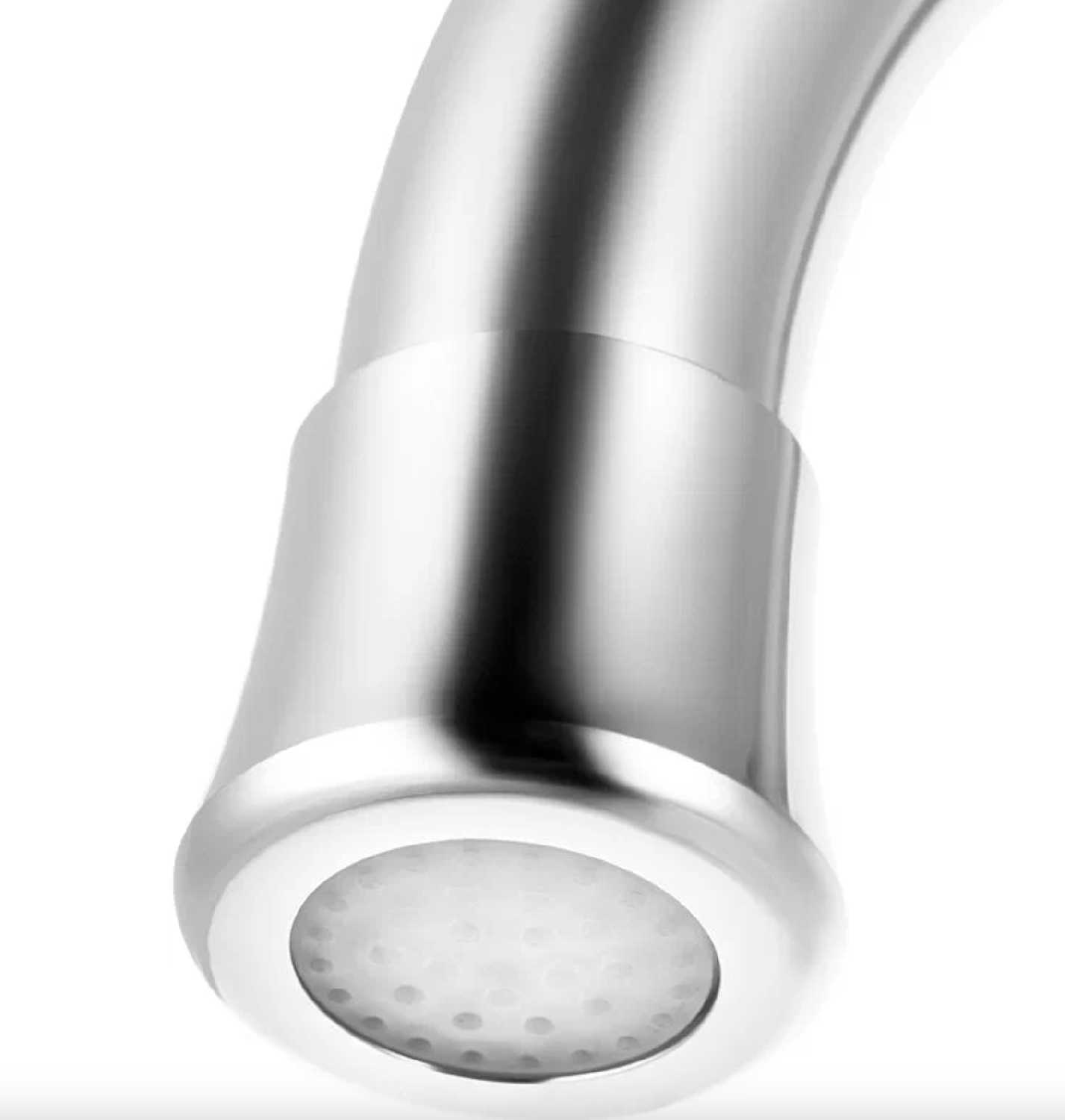 Кран обеспечивает плавную регулировку напора и температуры поворотом рычага, а компактный излив формирует удобную для мытья посуды струю. Современный дизайн гармонично вписывается в большинство интерьеров кухонь и дачных домиков. Основной недостаток — ограниченная высота излива, которая может создавать неудобства при наполнении высоких кастрюль.