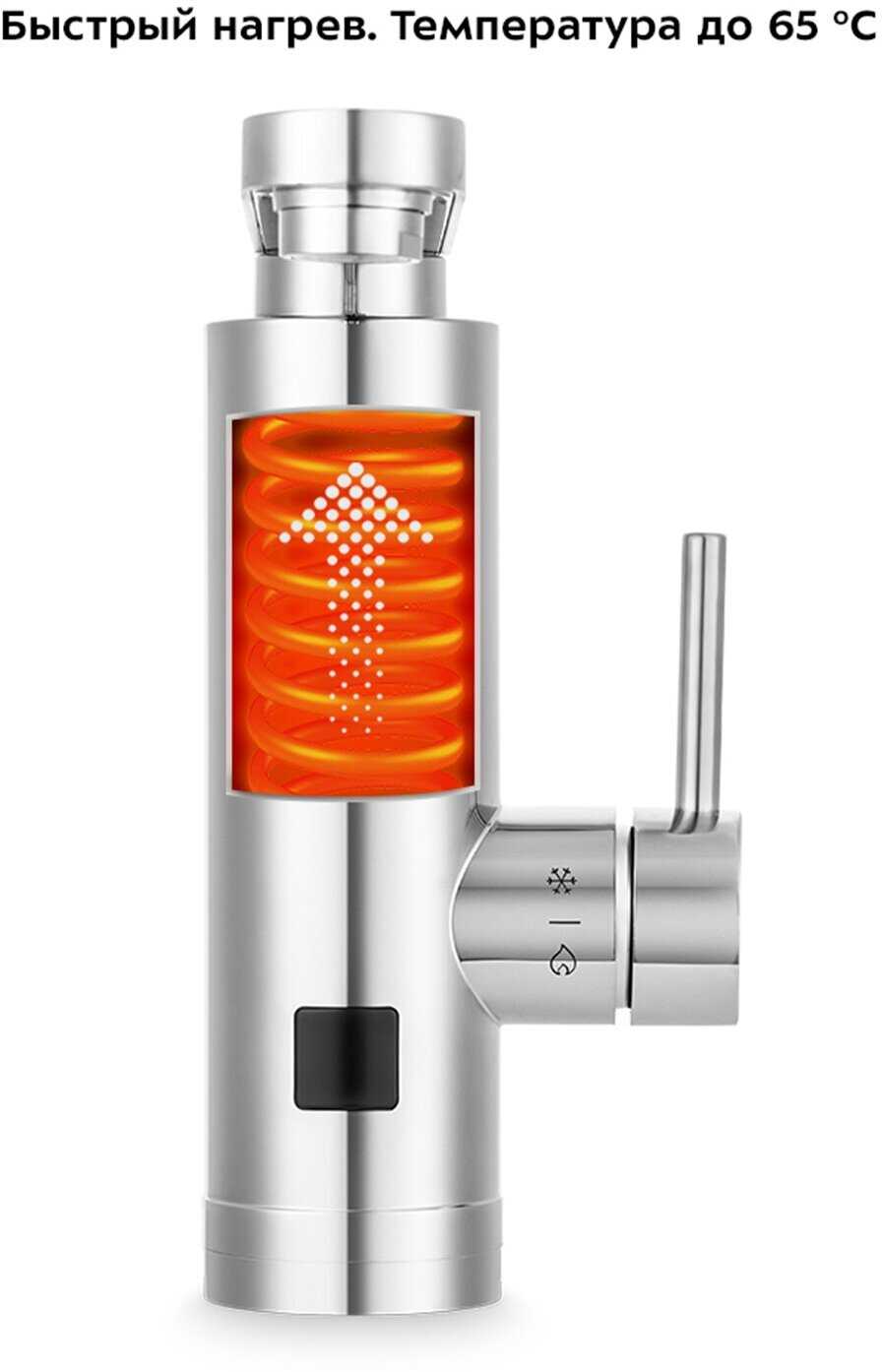 Нагрев происходит за 15–30 секунд, на малом напоре — пару секунд. Пользователи фиксируют подъем с 24°C до 45°C менее чем за полминуты. Вода становится горячей мгновенно при включении до щелчка. Однако первые полминуты возможны колебания температуры. -