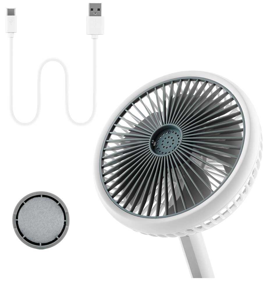 Практически тихий, ручкой и шарниром можно отрегулировать комфортное для вас направление потока воздуха, или повесить на стену с помощью петли. Можно добавлять эфирное масло и использовать в качестве powerbanka.