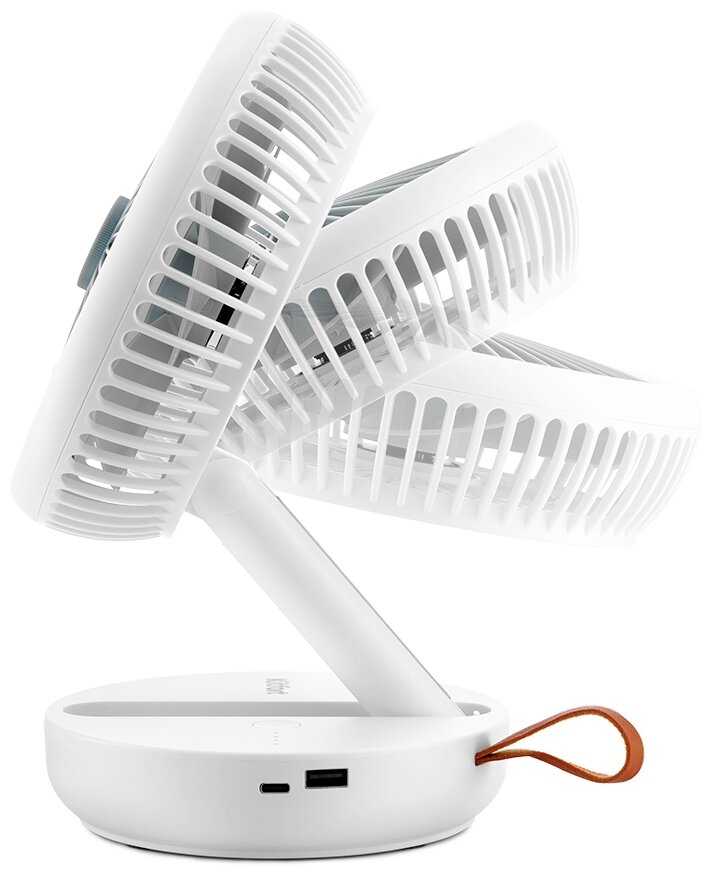 С одной стороны, он прекрасно справляется с охлаждением воздуха (у вентилятора четыре скорости, но если ставить его на расстоянии полуметра-метра от себя, то с головой хватает и первой); с другой — он беспроводной, а это означает, что есть возможность спокойно перемещать его. В сложенном состоянии вентилятор компактен, его можно положить в рюкзак/сумку и спокойно работать за пределами дома. Пока что о заряде ни разу не пришлось переживать: его стабильно хватает на весь световой день, но в случае чего всегда можно своевременно поставить на зарядку от ПК или пауэрбанка.