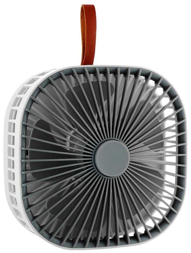 - + Компактный и мобильный вентилятор. Складывается и может работать от встроенного аккумулятора (производитель заявляет время работы до 10 часов, зарядка от USB). В сложенном состоянии можно подвесить на стену (имеет петельку сзади).