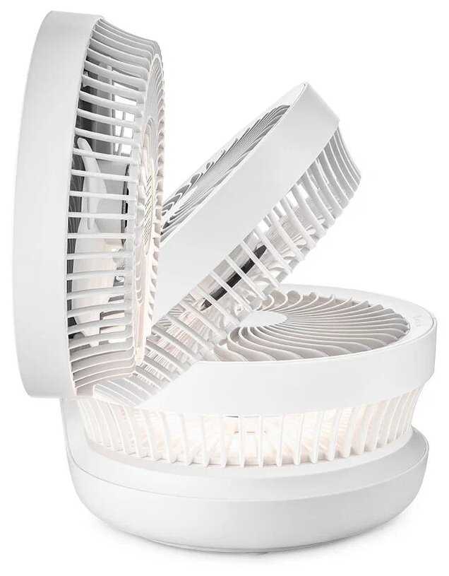 - + Компактный, простой в использовании, хорошо дует даже на низкой скорости. Удобно, что можно подвесить либо поставить. Есть подсветка, можно использовать одновременно и как ночник. Также удобно, что есть режим вращения.