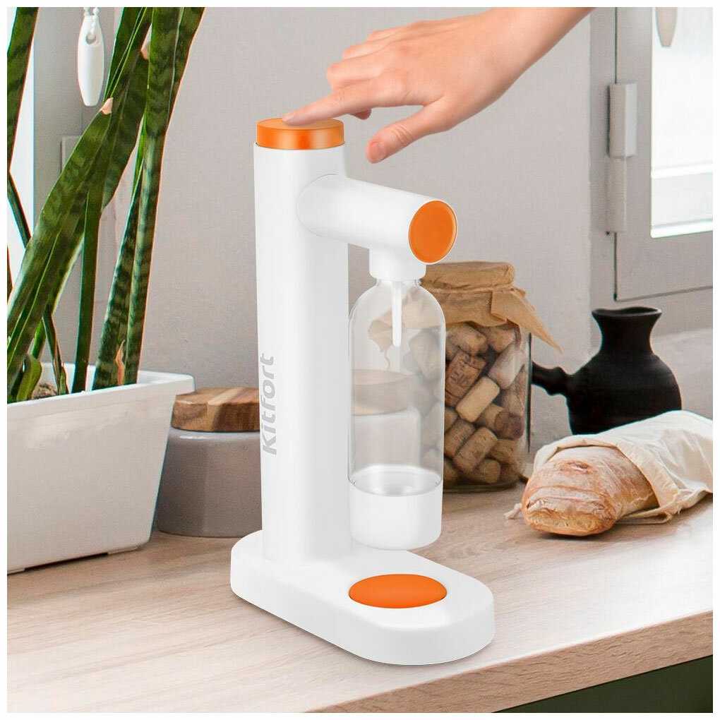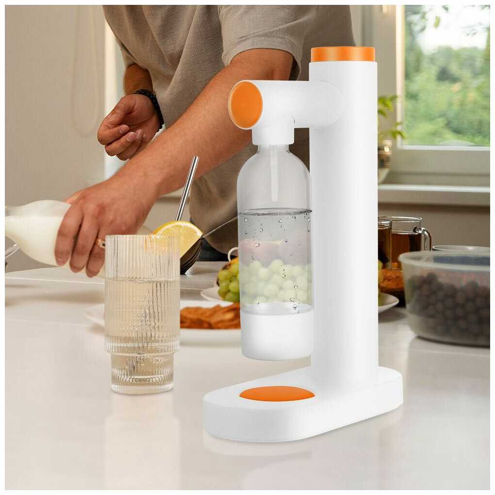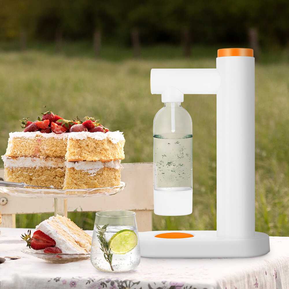 - + Отличный аппарат! Легко установить, хорошо газирует. Можно сделать газацию любой степени, регулируется силой нажатия кнопки и количеством нажатий. Все получилось с первого раза, не разочаровал:)) Дети счастливы и изучают рецепты коктейлей)