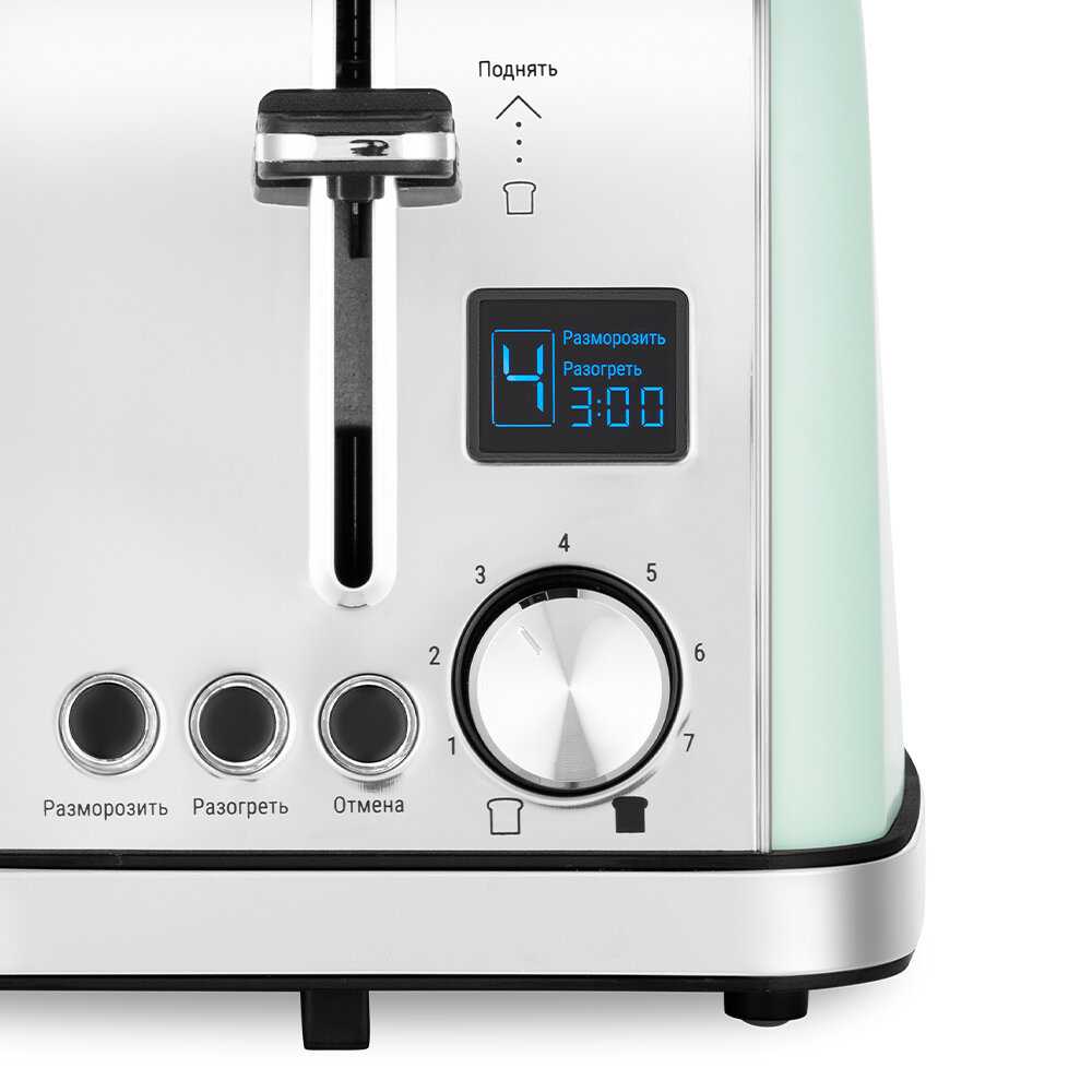 функции разогрева и разморозки пока не успела попробовать, но тосты получаются замечательные. красивый цвет.