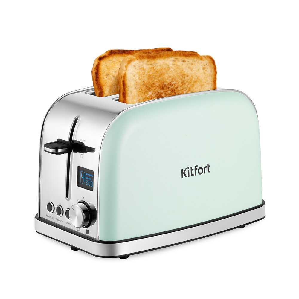- + Покупали тостер в подарок маме. Люблю бренд Kitfort, у меня такой тостер, только красного цвета, служит много лет. Сейчас купила нежно-салатовый, цвет нежный очень красивый. Есть дисплей, на ктором отображается количество минут и остаточное время. Очень удобно. Тосты прожаривает равномерно. Готовые тосты выскакивают достаточно высоко, очень удобно их доставать.