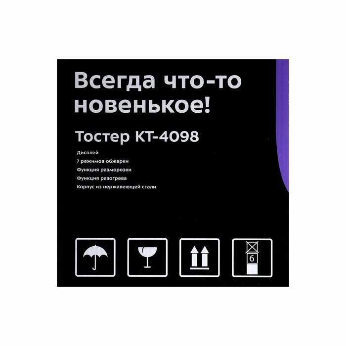 - + Искала тостер именно мятного цвета, чтобы подходил к чайнику. В доме уже есть техника Kitfort, мне нравится соотношение цены\качества. Помимо цвета понравилось в этом тостере то, что есть экран, на котором видна степень прожарки и время до окончания программы. Обычно жарим на 4 (всего 7 программ). Но некоторых хлеб уже горит на 4, поэтому переходим на 3. Получается хрустящий кусок. Есть кнопка отмены программы, это значит, что можно вытащить хлеб и раньше. Есть разморозка, но пока ей ни разу не пользовались. Можно подогреть остывший хлеб) Удобно, что полозья поднимаются рукояткой немного наверх - можно легко вытащить маленькие кусочки.