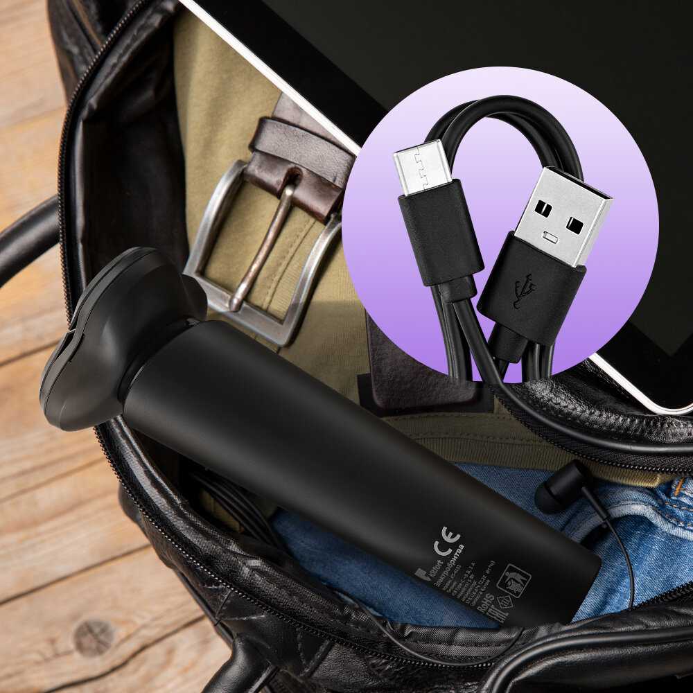 - + Бритва лёгкая, удобно держать в руке, хорошо сбривает даже жёсткую щетину. Раздражения кожи не было. Заряжается быстро. Удобно, что через обычный USB‑C, можно заряжать даже от павербанка.
