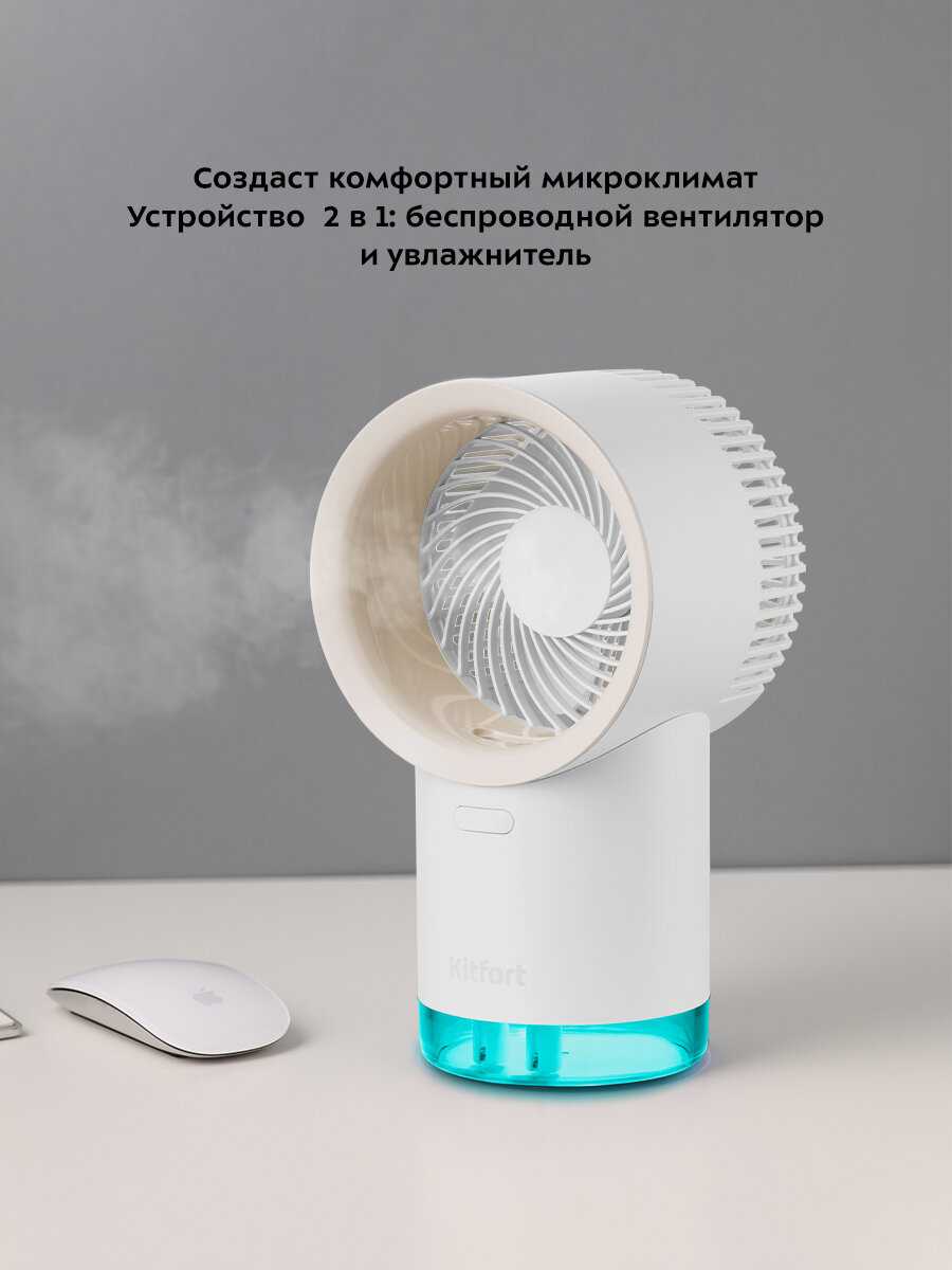 Очень хороший вентилятор за свою стоимость. Мощность приятная. Так же выделяется функцией увлажнения воздуха, что ещё лучше сказывается на комфорте при использовании. Так же есть подсветка индикатор, и это прикольно. Качество материалов не подвело. Единственное что смущает это- нет никаких крепежей между самим вентилятором и камерой с водой. Хотя если пользоваться аккуратно, проблем и не возникнет. Вцелом, отличное приобретение!