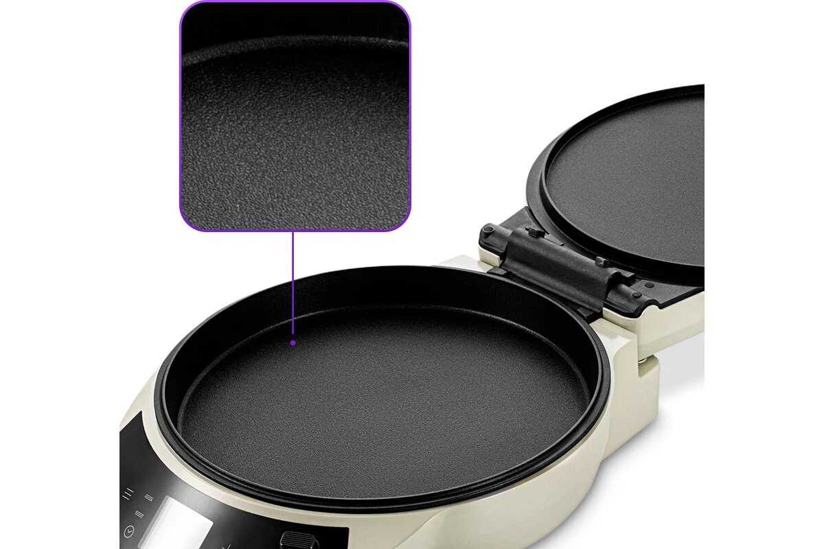 | Особенности : | антипригарное покрытие, крышка, съемные пластины |