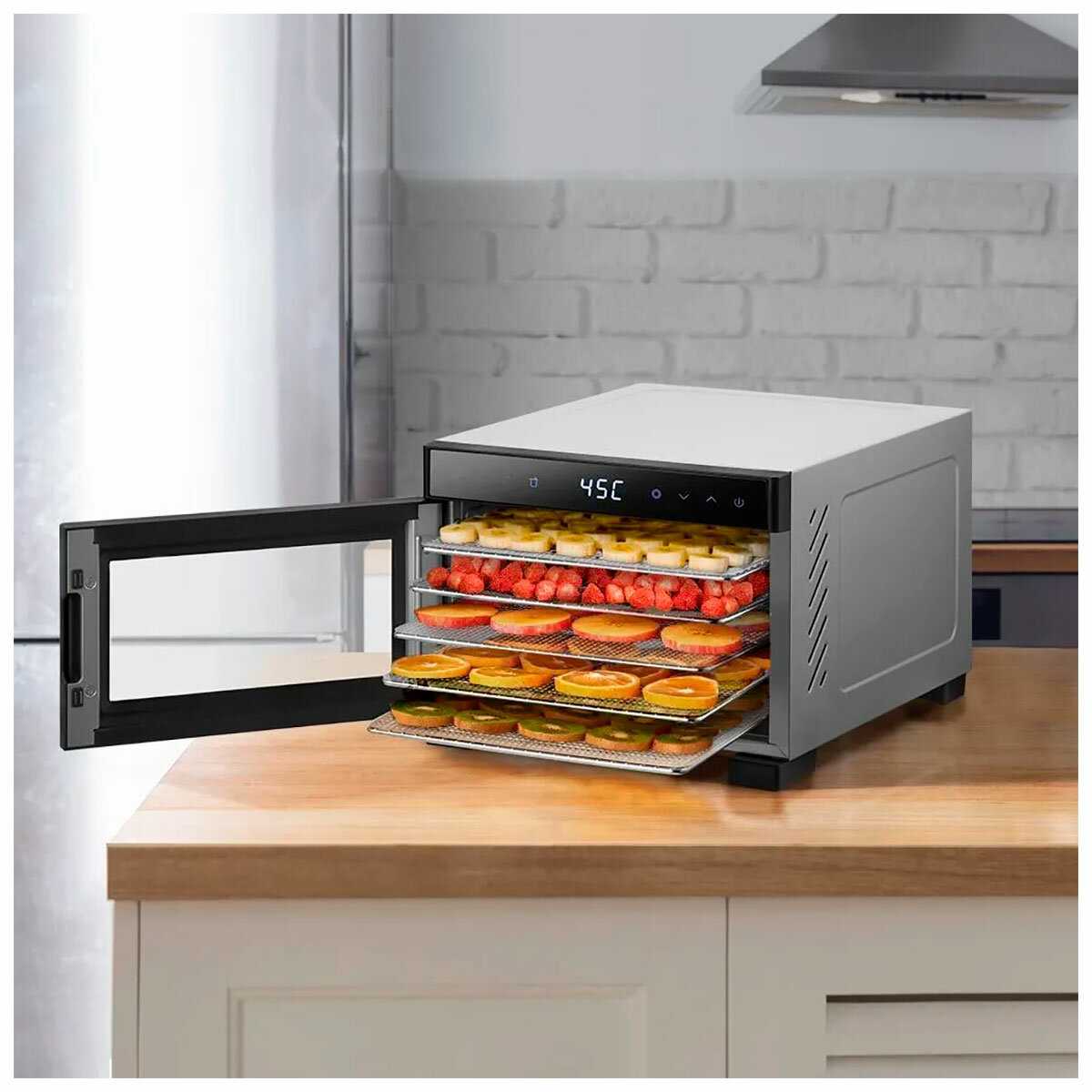 - + Дегидратор получился удобным в использовании и с хорошим набором функций. Сборка на высоте, комплект полный, а разобраться с ним просто. Мы специально остановились на модели не слишком крупной, чтобы легко помещался на кухонной полке без лишних хлопот. Готовит равномерно фрукты и мясо, особенно если во время процесса переставлять сетки местами. Есть несколько режимов нагрева, что позволяет настроить оптимальные условия под разные виды продуктов. Приятно, что можно выставлять температуру с шагом всего в один градус. В комплекте идет брошюра с советами по сушке и рецептами для различных категорий еды.
