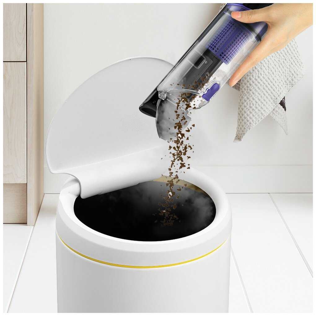 - + Понравился лаконичный, но интересный дизайн. Компактный, с удобным лючком для сброса мусора.