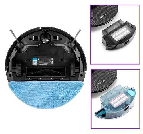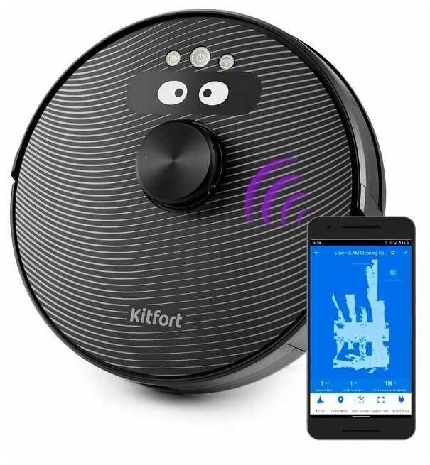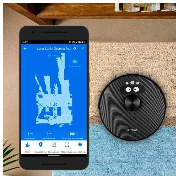 Рисует карту комнаты и строго по ней, просто так не болтается., закончил уборку и на базу.Пылесос трудится в большом доме в деревне. Зарядки достаточно, чтобы сделать уборку во всех комнатах.Долго выбирали марку пылесоса, остановились на Kitfort, дома отпариватель этой фирмы, также очень хорош.