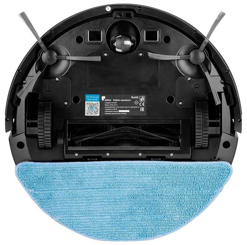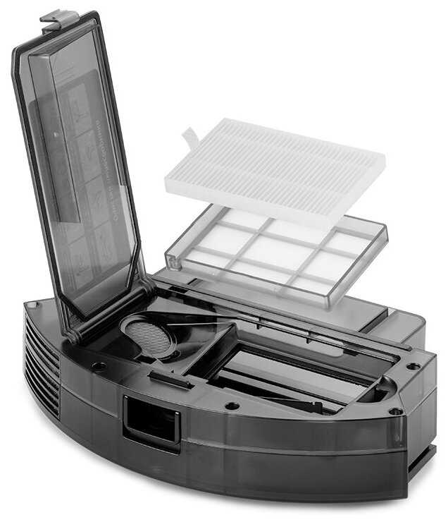 - В набор входят 2 сменные боковые щетки, HEPA-фильтр, 2 тряпки для мытья пола и щетка для чистки.