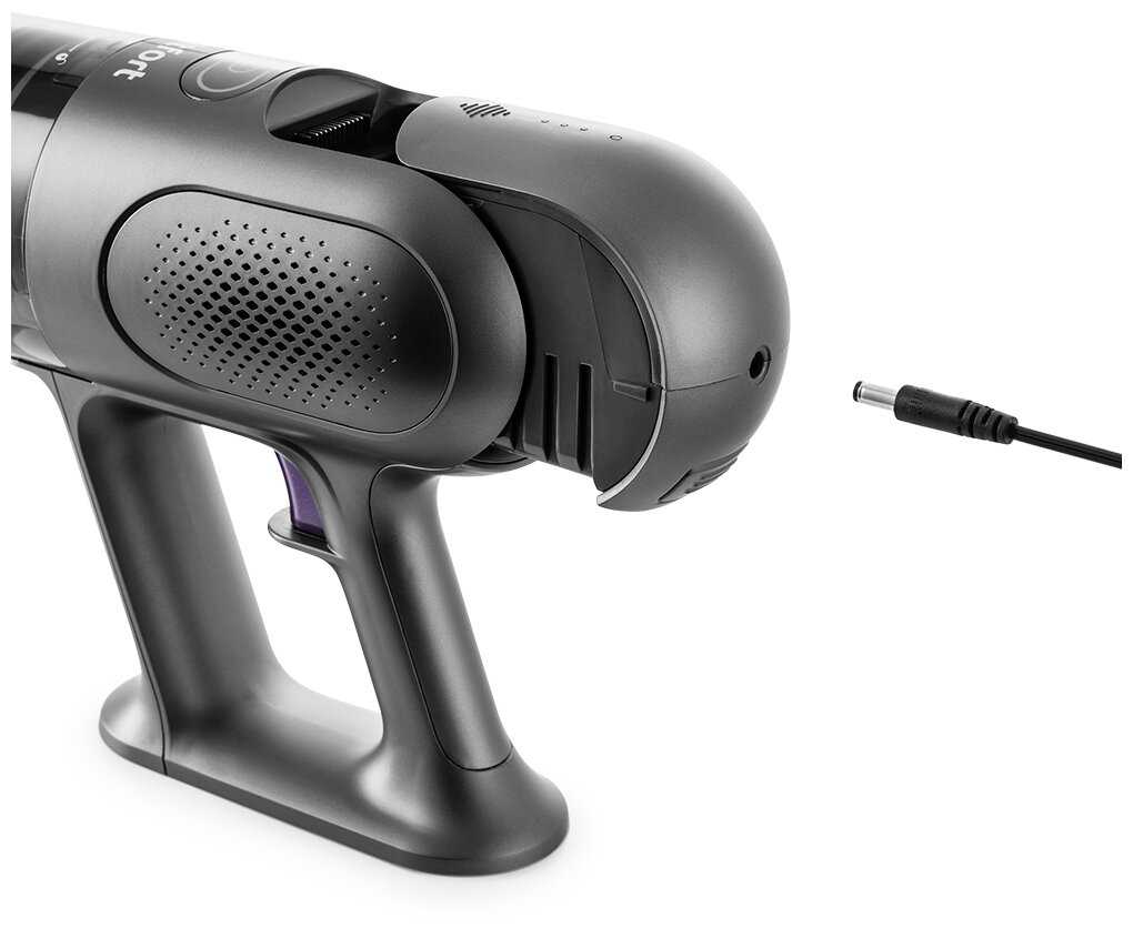 - + Стильно минималистично выглядит, 2 режима уборки, подсветка на основной щетке, индикаторы заряда, можно использовать как в вертикальном так и в ручном режиме с 2 доп. насадками