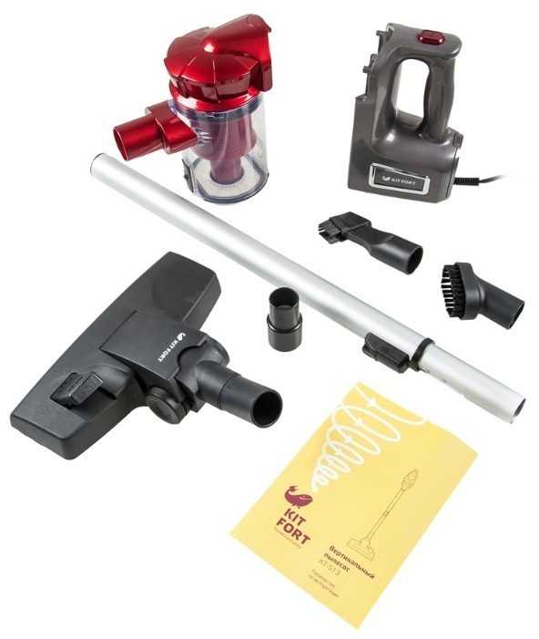 UPD. К сожалению для производителя KitFort, вынужден снова менять отзыв -- при легком падении на пол пылесоса (не устоял на периле дивана), отломалось крепление патрубка. Писали производителю по поводу аксессуаров, ответа не получили...