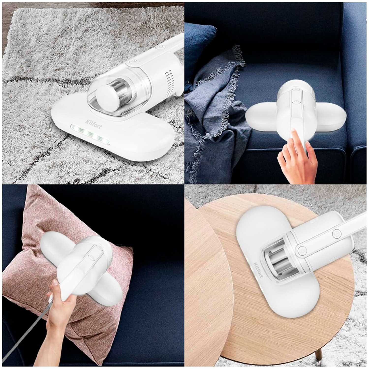 Все заявленные функции работают; ультрафиолетовое излучение, вибрация, которая выбивает пыль, всасывние, также подсветка, которая освещает обрабатваемое место. Пылесборник прозрачный, так что все видно сколько пыли собрали и когда надо будет очистить его. Я была в ужасе, когда увидела сколько пыли собрала со своего матраса. Собирает все: видимую и невидимую пыль ( даже в состоянии пудры), волосы. Покупкой очень довольна.