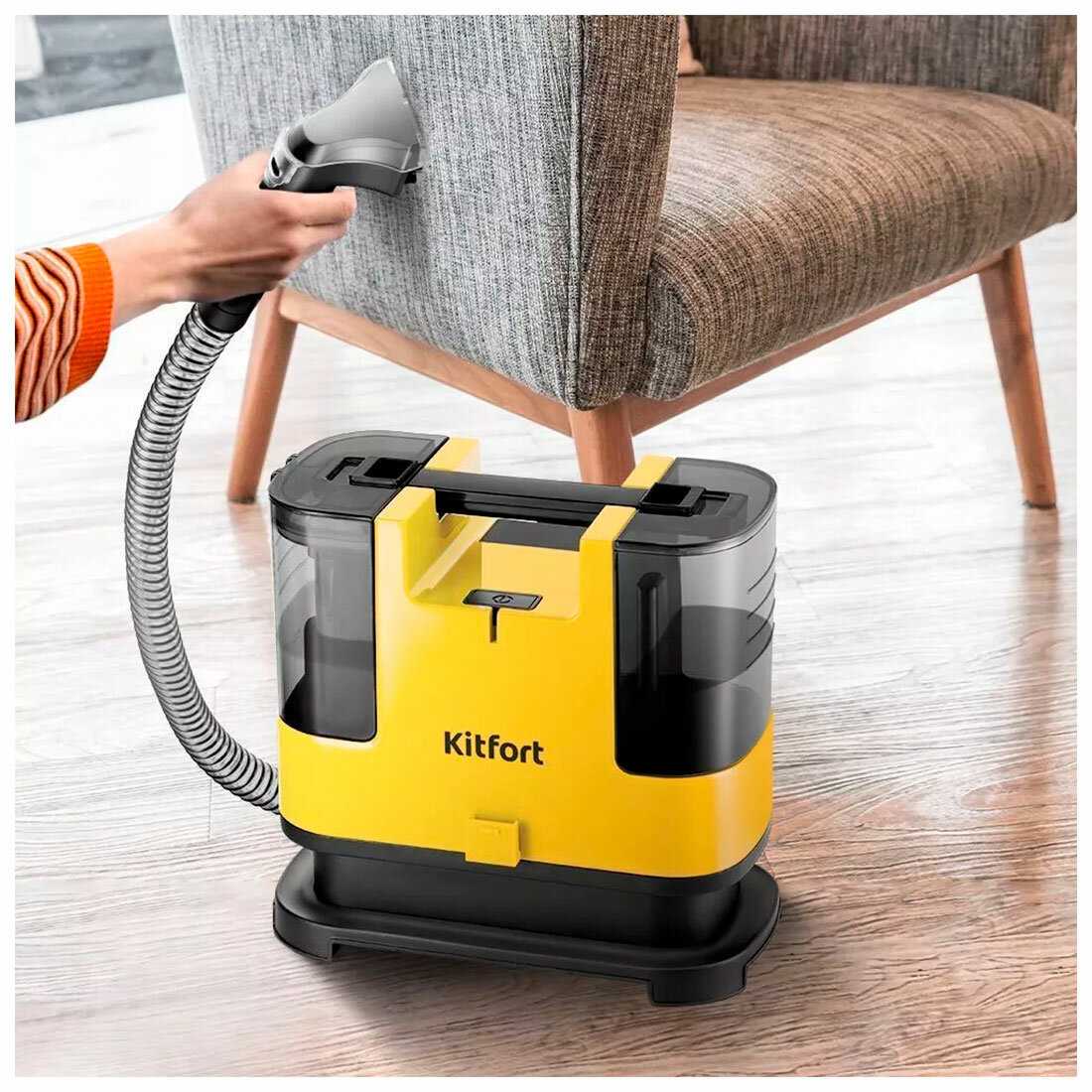 Давно мечтала о моющем пылесосе и изучала рынок. Остановилась на Кitfort KT-5162. Цена в DNS самая комфортная (сторонние магазины предлагают на 2т дороже ).Пылесоса не было в наличии, привезли на следующий день. Белый мой диван нуждался в чистке. На сложные места с явными загрязнениями было нанесено средство и оставлено на 30мин. Решив начать чистку простой водой (без нанесения моющих средств)со спинки которая казалась чистой. Каково было удивление ,что вода была серая. Результат оказался выше ожидаемого!За мытье дивана и одного кресла пришлось наполнять контейнер с водой 5 раз. Сливать чаще. Но это не смущала , так как я поставила бутылку на 5л воды для заполнения и ведро для слива ( не пришлось ни куда отходить). За счет маленьких форт он легкий и можно при уборке одной рукой подавать воду и чистить в другой держать пылесос. Легкий в обслуживании, просто защелкивается и отрывается. Очень довольна покупкой и результатом работ! И от самой работы тоже получила удовольствие.