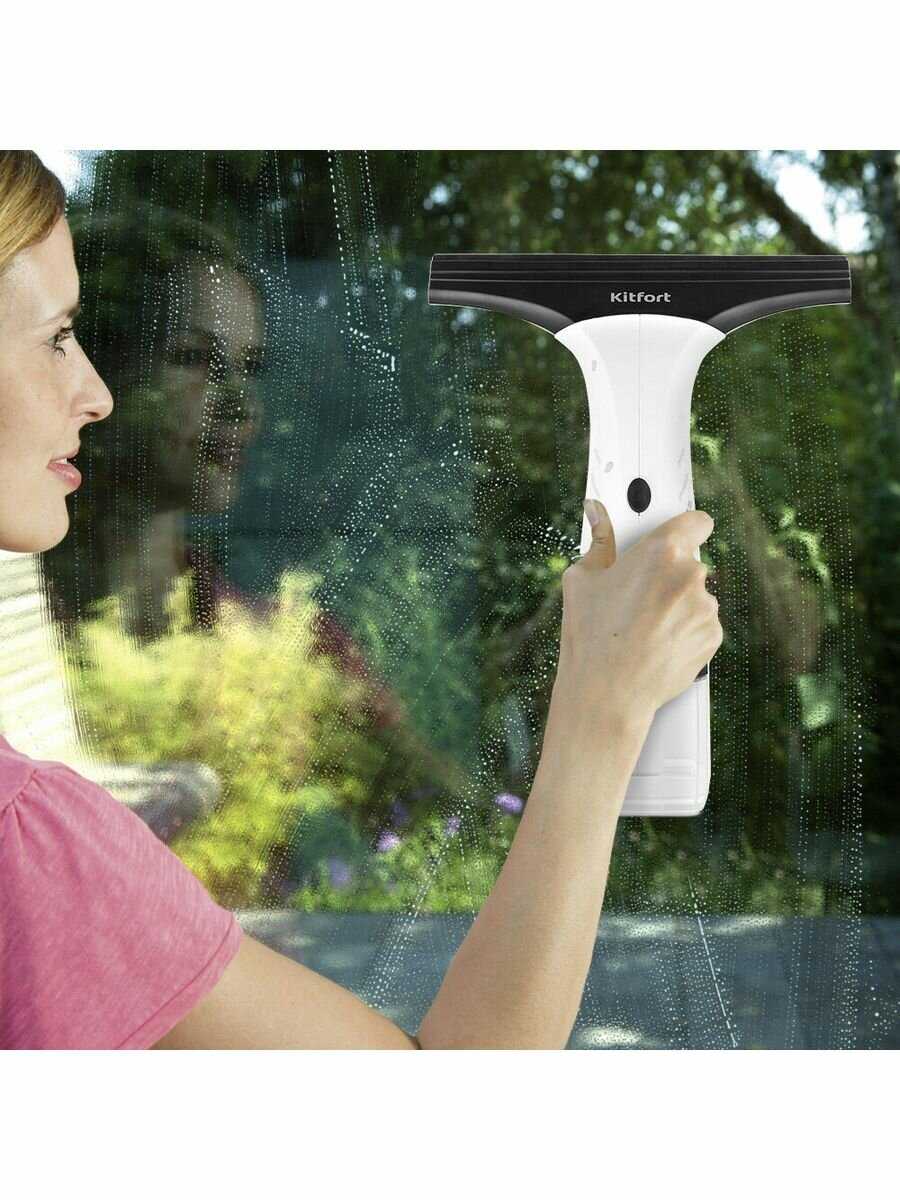 Заряда аккумулятора хватает на обработку 3-4 больших окон (например, трёхстворчатого окна + зеркала). При интенсивном использовании корпус может ощутимо нагреваться, но перерывы в работе не требуются.