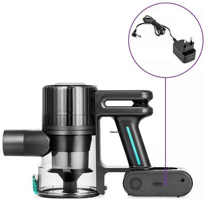 Можно заряжать пылесос в ней, можно отдельно, отсоединить аккумулятор и присоединить блок питания.