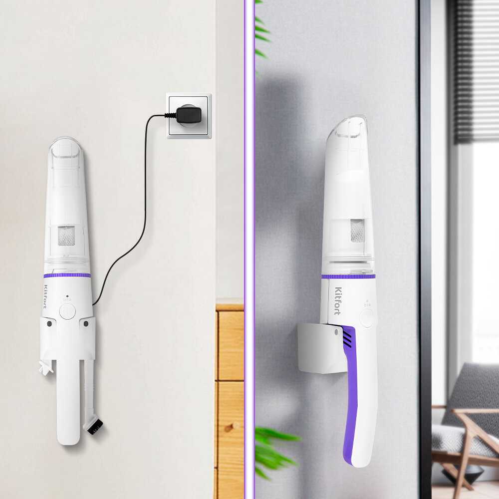 Долго выбирали ручной, автономный маленький пылесос. Выбрали Китфорт, по двум характеристикам. Наличие двух скоростей и влажная уборка. Для уборки мусора после попугая достаточно и первой скорости. В машине, учитывая ворс и песок включаем вторую скорость. Со своими задачами справляется. Удобно снимать пауков и мошек с потолка.
