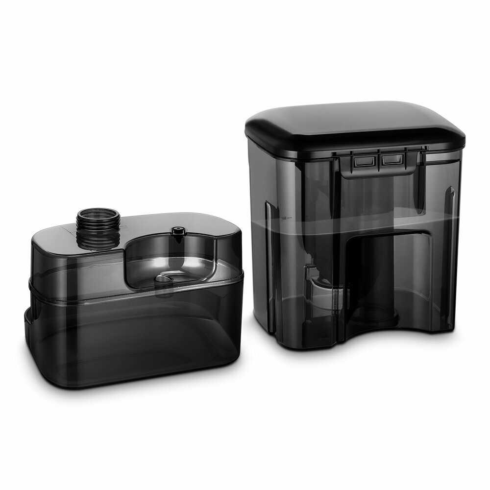 - Однокнопочная система опустошения контейнера (0.6 л) минимизирует контакт с пылью.
