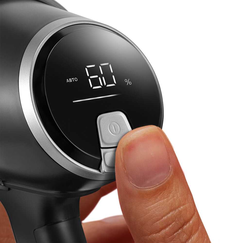 - Дисплей показывает уровень заряда, что помогает планировать уборку.