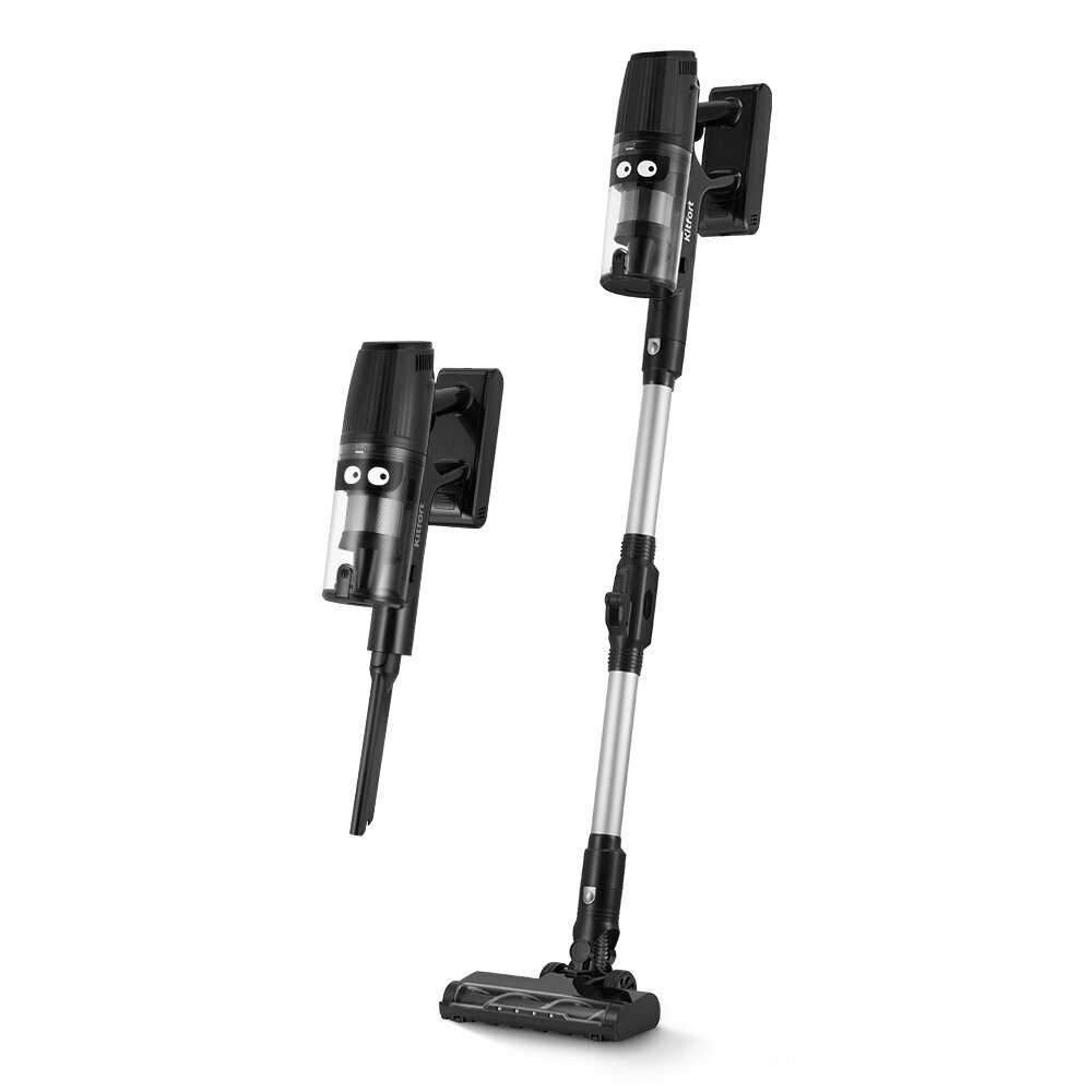 Пылесос хороший за свою цену. Удобно, что есть подставка, он разборный и занимает мало места. Мощность всасывания хорошая. 3 скорости имеется. На полной мощности хватает минут на 30 автономной работы, потом заряжать нужно. Если у вас большая площадь, то может быть напряжно из за этого. Мб стоит Kitfort выпустить сменные аккумуляторы, чтобы можно было их менять во время уборки. Это бы невилировало данный недостаток. Ещё бы возможность отключить подстветку на щетке вообще супер)) Насадки есть для ковров и ещё для чего то (пока не понял для чего) Подставка прикольная для хранения.