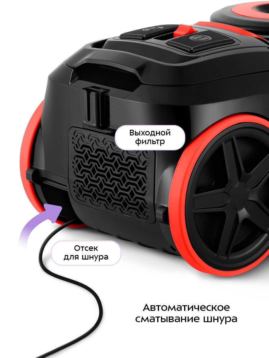 - Особенности конструкции: автоматическое сматывание шнура