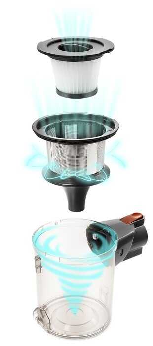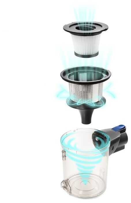 - Съемные фильтры (предварительный и HEPA) моются под водой, что продлевает срок службы.