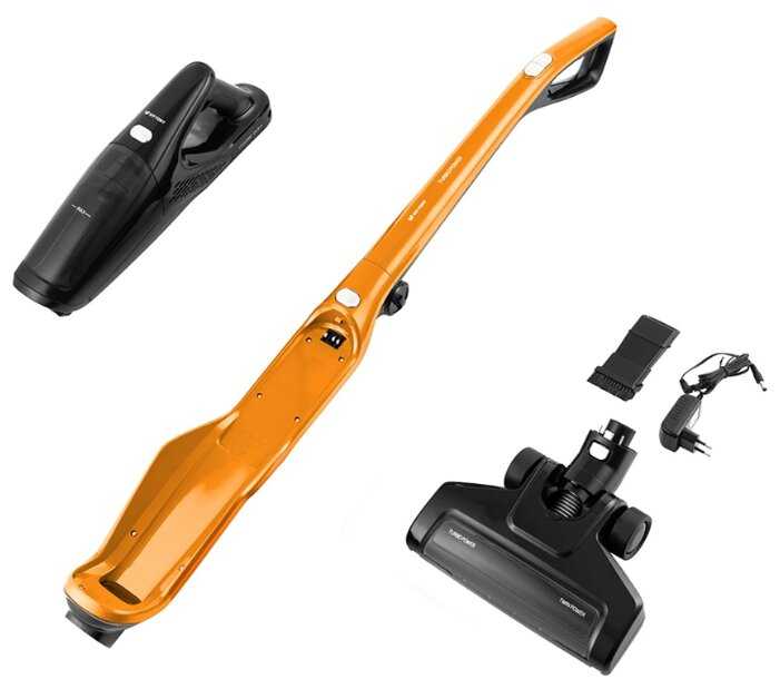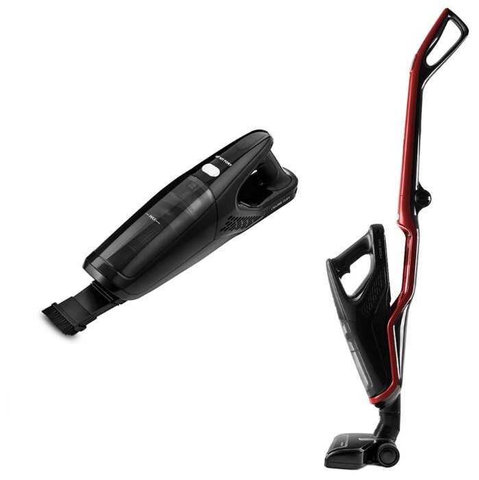 - без мешка (с циклонным фильтром) сухая уборка мощность всасывания 65 Вт потребляемая мощность 130 Вт отсоединяемый ручной пылесос комплектация: фильтр тонкой очистки аккумуляторный труба всасывания: цельная дополнительные функции: управление мощностью на рукоятке