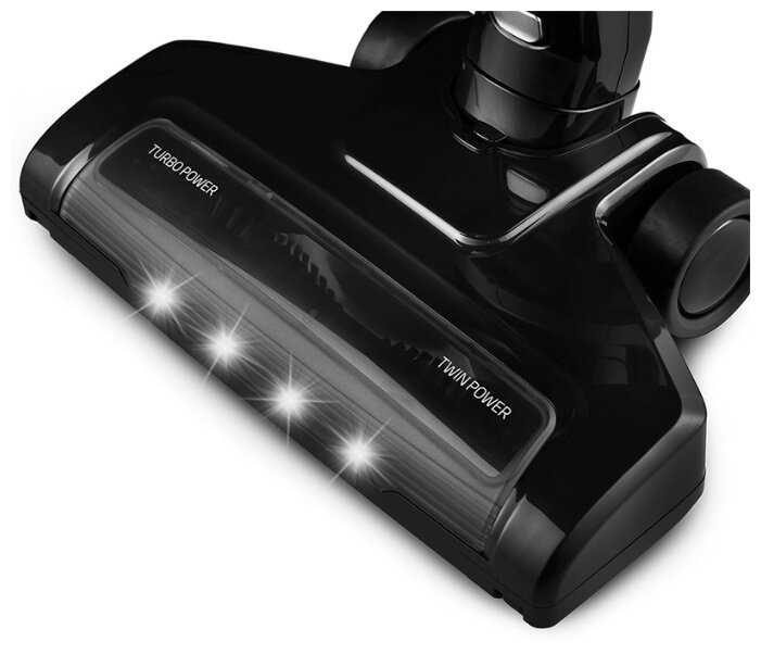 - + Отлично пылесосит: засасывает здорово пыль, грязь, а главное шерсть (голден ретривер:)). Подсветка это супер!!!