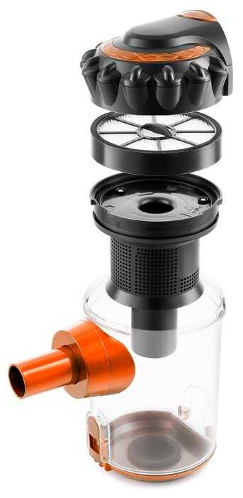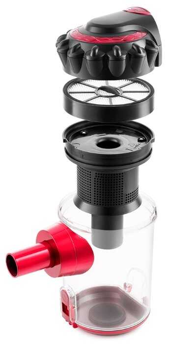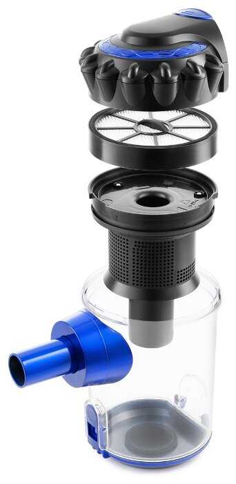 4. Удобно, что можно полностью снять и разобрать контейнер (можно и мусор легко вытряхнуть, и помыть). - - 1. Длинную шерсть с ковра убирать тяжеловато (приходится по много раз проходить одно и то же место, вручную очищать щетку, что при габаритах пылесоса не так просто сделать, как при обычной не вертикальной модели).