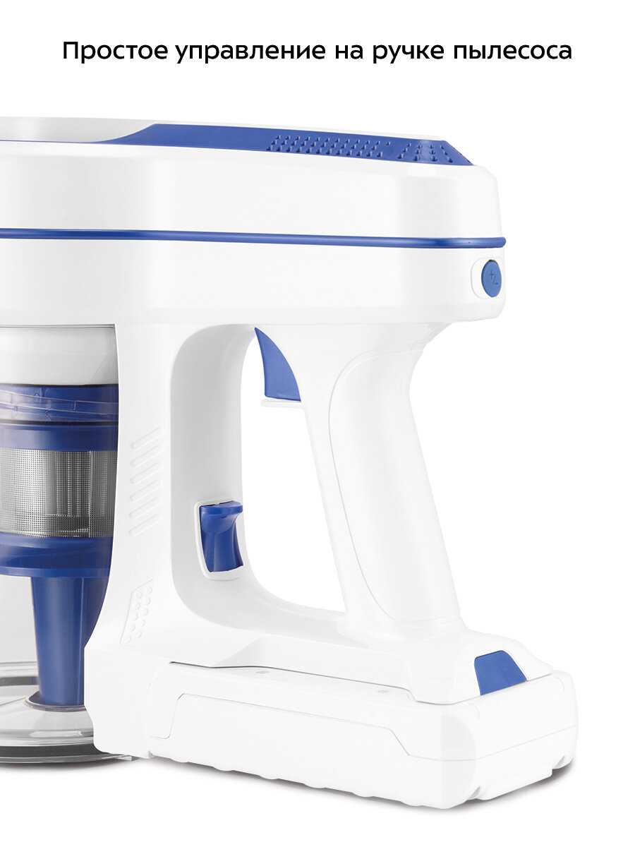 - + Пылесос приятно удивил уже с первого использования — лёгкий, манёвренный, удобно лежит в руке. Отлично собирает пыль и небольшие загрязнения, даже в обычном режиме. Очень понравилась яркая подсветка на щётке: с ней отлично видно весь мусор на полу, даже в тёмных углах, и уборка стала заметно эффективнее. Зарядки хватает на полноценную уборку квартиры, плюс удобно, что всё управление находится прямо на ручке. Работает тихо, не раздражает и не мешает общаться. В целом покупкой доволен — для своей цены просто отличный вариант, надеюсь прослужит долго.
