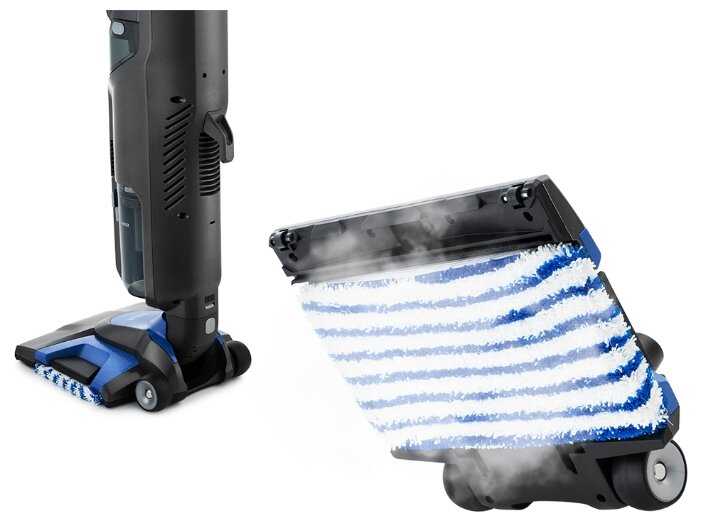 - Режим одновременной работы пылесоса и паровой швабры сокращает время уборки: пол очищается от загрязнений и дезинфицируется паром за один проход.