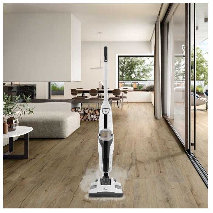 - + Муж подарил на праздник. Долго выбирали и остановились на этой модели. Довольная как слон. И пылесосит, и моет. Разводов вообще не оставляет. Шнур довольно таки длинный. Контейнер под воду очень вместительный. Мою им и плитку, и ламинат. Высыхает моментально и чистота.