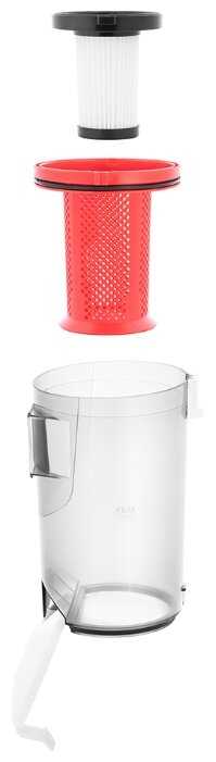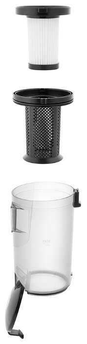 - Прозрачный контейнер позволяет контролировать заполнение, хватает на еженедельную уборку небольшой квартиры.