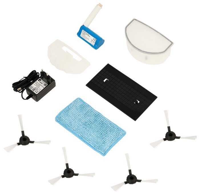 - В комплекте запасные щетки, фильтр и тряпка, что продлевает срок службы.