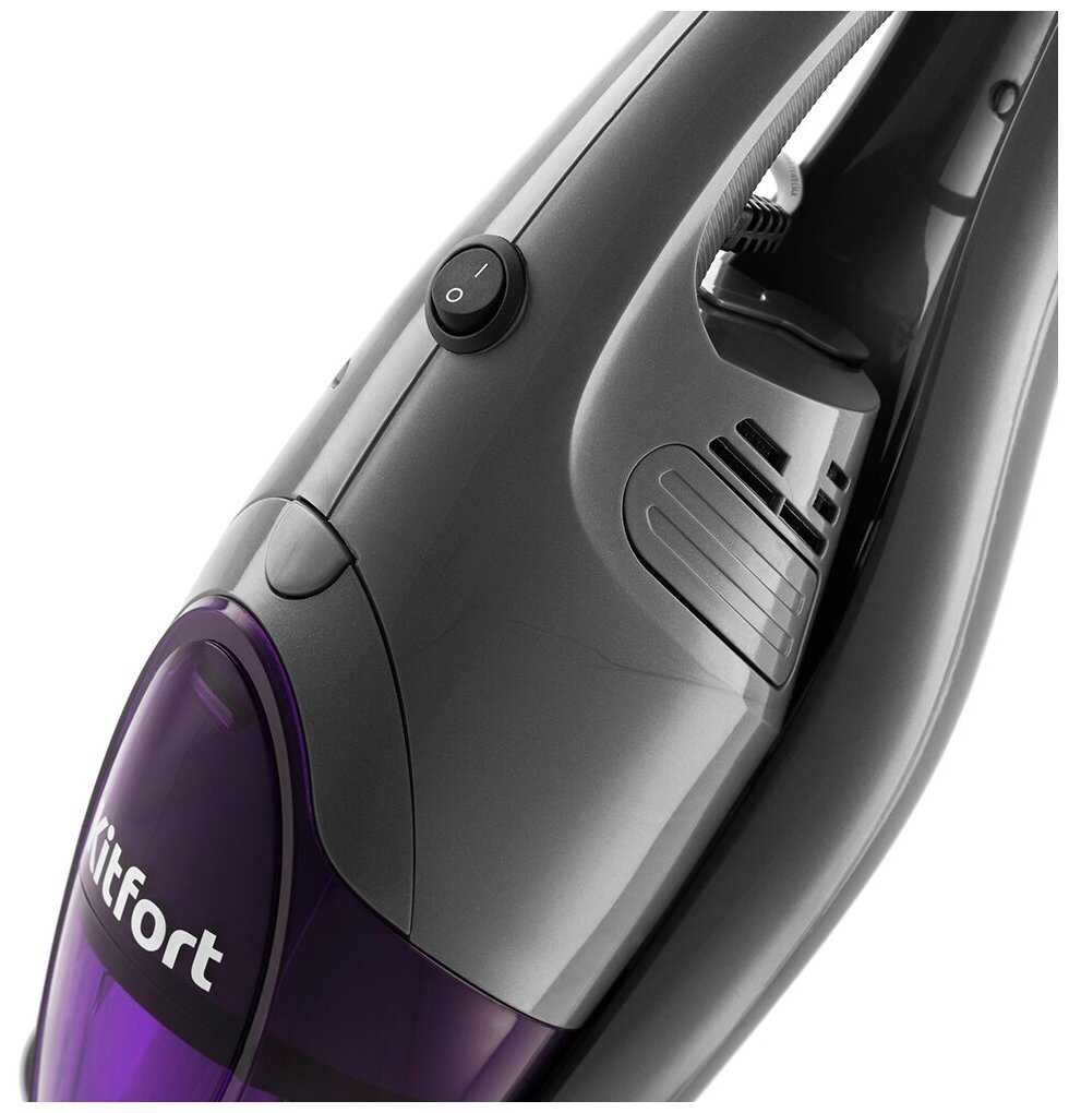 - + Долго выбирали вертикальный пылесос, выбор пал на модель Kitfort KT-582. Цена демократичная. Впечатления от уборки - отлично удаляет пыль и мелкий мусор с паркета. На ковровых покрытия одинаково мобилен при движении вперед и назад, не нужно торопиться и при медленном проходе поверхности удаляет и пыль и ворс. Съемный всасывающий блок внизу, такая конструкция обеспечивает максимальное всасывание, потери мощности на проход потока в трубе минимальны. Неоспоримое достоинство конструкции - это возможность использовать всасывающий блок как отдельный бытовой прибор для удаления мусора в щелях и мебельных зазорах, также как автомобильный пылесос, и для чистки мягкой мебели. Контейнер на вид небольшой, но при еженедельной уборке его объема достаточно для уборки 60-70 метров жилой площади. Фильтр легко промывается сильным душевым напором теплой воды, высыхает в течении суток. Шнур около 5 метров, что вполне достаточно для уборки комнат в бюджетной квартире. Что касается нагрева и шумности - и то и другое в пределах терпимой нормы, доказывает заявленную производителем мощность электроприбора. Пылесосом довольны. Мне он напомнил безотказный автомобильный пылесос еще из советских времен, только модернизированный и усовершенствованный.