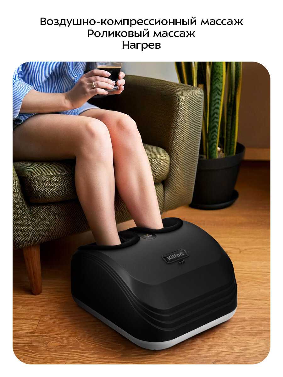 - + Массажер Kitfort КТ-5912 — это продуманный и многофункциональный гаджет для здоровья ног. Он предлагает несколько режимов работы, позволяя настроить массаж именно под свои нужды: от мягкого разогрева перед сном до интенсивного разминания затекших мышц.
