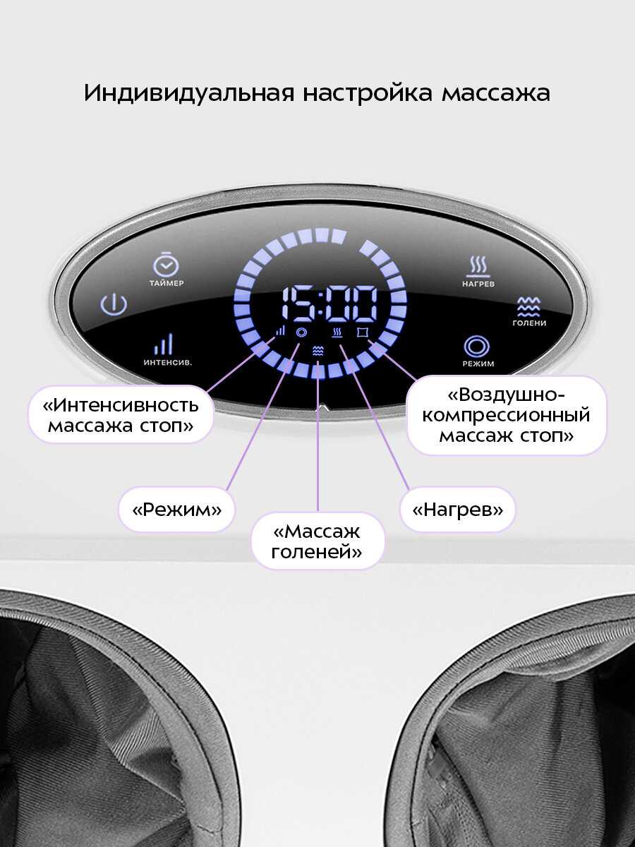 К тому же, предусмотрены 2 режима подогрева, которые усиливают расслабляющий эффект. В целом, массаж голеней и ступней не только снимает усталость, но и отлично разминает стопы, помогая восстановиться после долгого дня. - - Не выявлены