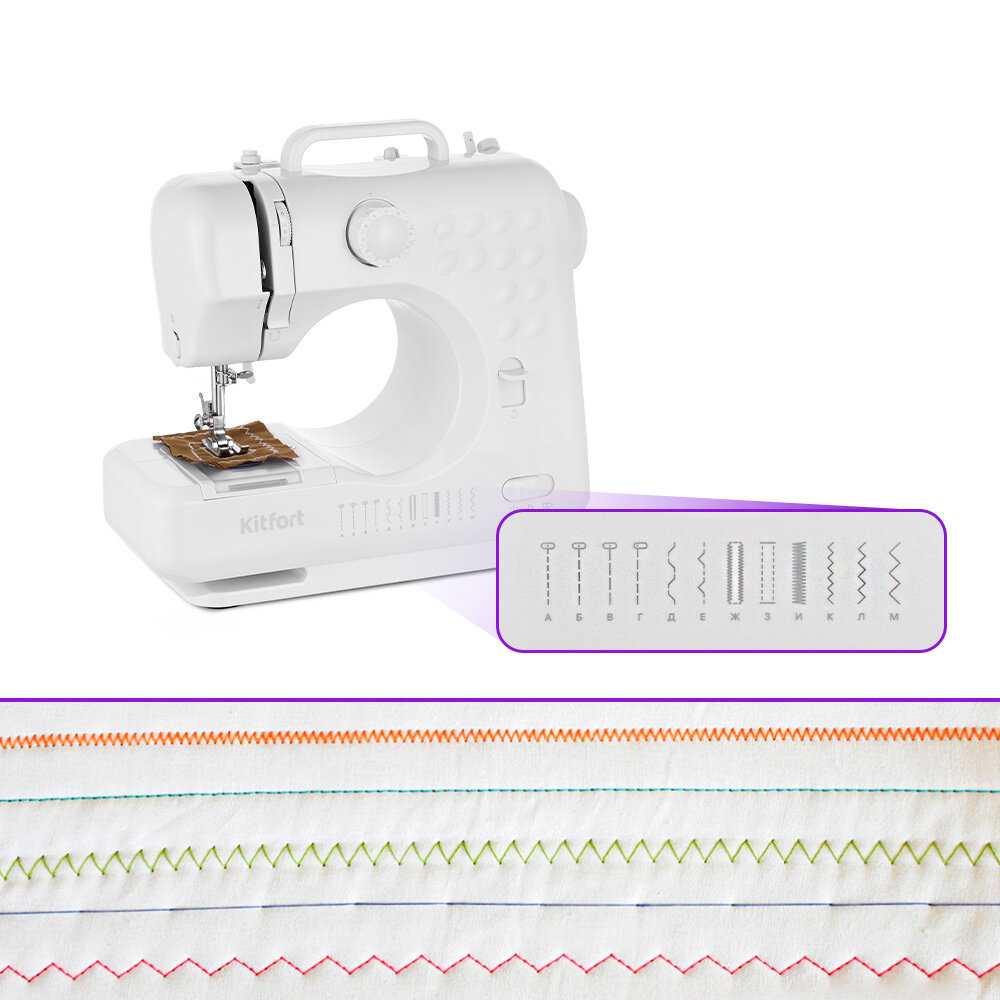 Прибор может выполнять 12 видов строчек, включая строчки для обработки петель для пуговиц.