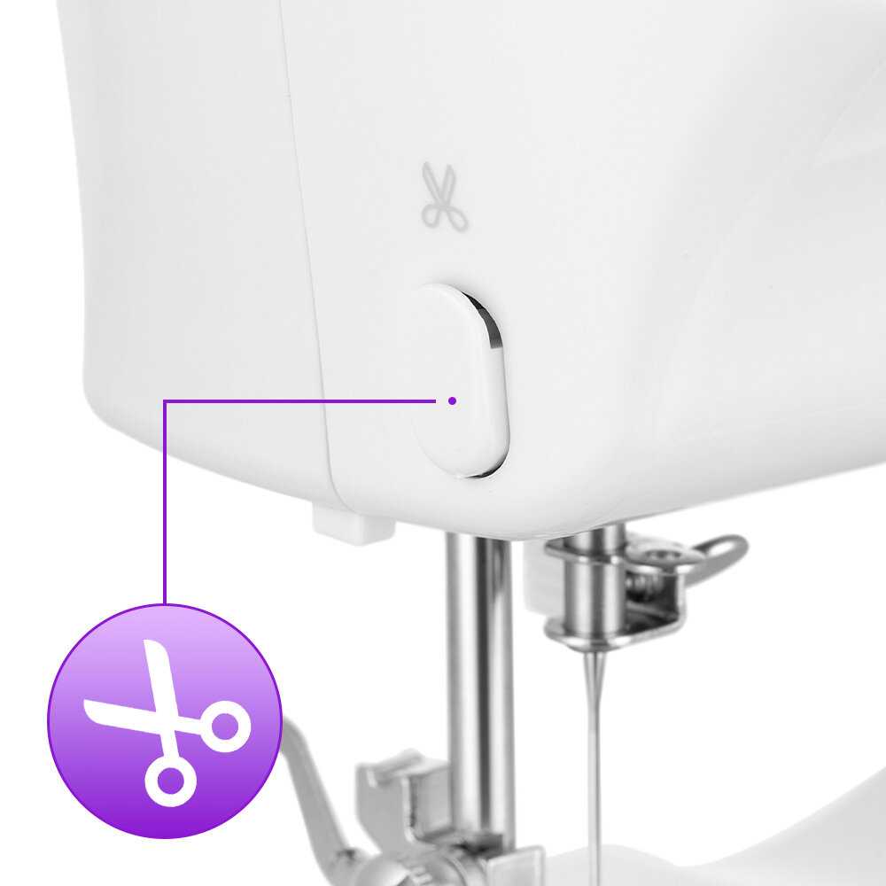 Имеется также и встроенный нитеобрезатель, поэтому ножницы не нужны.