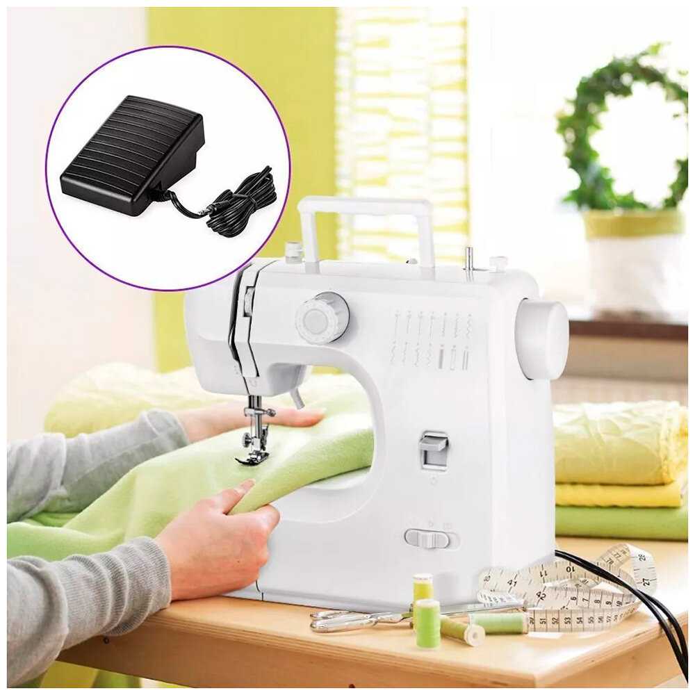 - Двойной контроль: ножная педаль с плавным ходом и кнопочный автомат для шитья без педали.