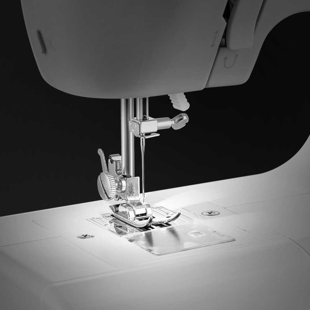 Встроенный LED-светильник обеспечивает чёткую видимость даже при слабом освещении, что особо отмечают пользователи при вечернем шитье. Яркость достаточна для работы с тёмными тканями без дополнительных ламп. -