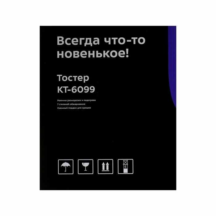 - + Тостер Kitfort КТ-6099 обладает небольшим размером и не занимает много места на кухне. Имеет красивый серебристый цвет металлик. Большие слоты для хлеба позволяют готовить тосты практически любого размера. Высокая мощность позволяет приготовить тосты за несколько минут, также есть 7 степеней уровня прожарки по желанию. Благодаря съемному поддону легко чиститься от крошек и грязи.