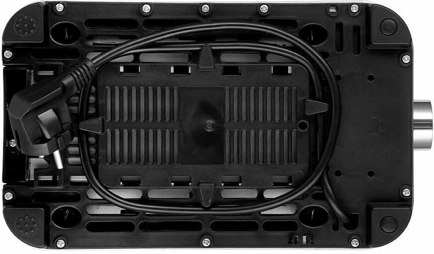 При габаритах 19x31x20 см устройство занимает минимум пространства. Переднее расположение панели управления исключает необходимость бокового доступа, а кабельный отсек в основании позволяет убрать излишки шнура (длина 0.8 м). -