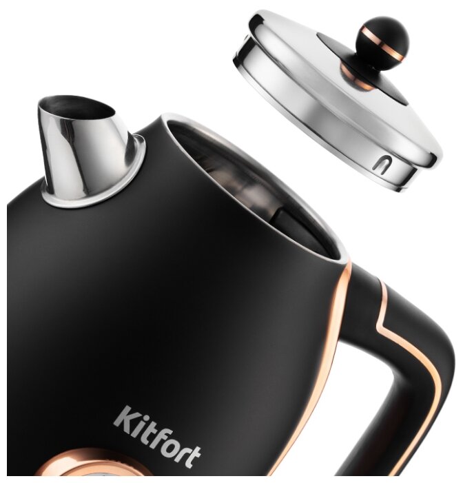 Вобщем , купил этот чайник муж ( с его аккакаунта и пишу отзыв, скажу честно , я бы выбрала китфорт , но другую модель и определенно другого цвета), и мне он понравился только 50/50... Из плюсов только у Китфорта мы нашли и термометр и уровень воды одновременно. Неплохой дизайн, в стиле стимпанк, крышка откррывается полностью. Это по плюсам. По минусам эхей! дизайнеры!! и ваще ! белый + серебристый + БРОНЗА?! + ГОЛУБАЯ БЛИН ПОДСВЕТКА!! На белом покрытии следы видны, его надо не просто протирать, а как бы отполировывать мягкой тряпочкой. Закипает нормально, не быстро и не медленно, по шуму тоже не сказать чтоб громкий. но слышный. Работает месяц, без нареканий. А да. еще носик.. Вобщем там такое строение, что вода не льётся сильным потоком , а как бы с ограничением , для меня слишком медленно, начинаю нервничать и опрокидывать больше и тогда струя льётся неправильно, для меня это скорее минус, не могу привыкнуть, чашку налить прям секунд 20 уходит