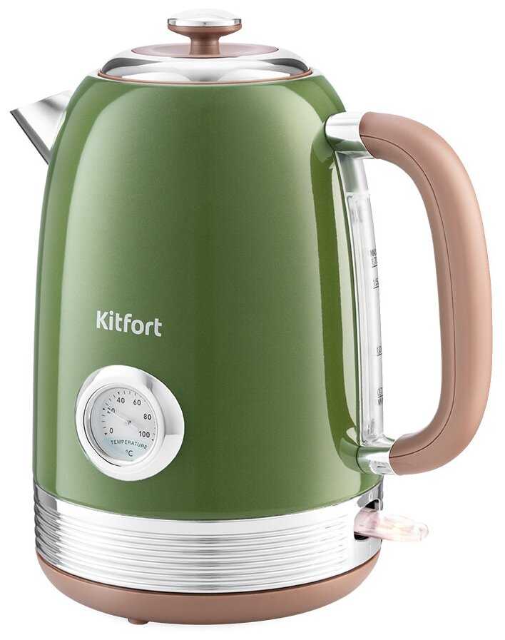 Чайник Kitfort KT-6110 в зеленом цвете просто чудо! Купил его недавно и теперь не могу нарадоваться. Он так ярко и весело смотрится на кухне, словно маленький зеленый друг. А эта фишка с показом температуры воды – просто спасение для любителя чая, как я. Больше нет переживаний, что перегрею воду для зеленого чая. К тому же, вода кипит быстренько, а чистить его – раз плюнуть. Каждый раз, как захожу на кухню, он меня радует. Если вам нужен чайник, и вы хотите чуть больше радости на кухне – смело берите этот!
