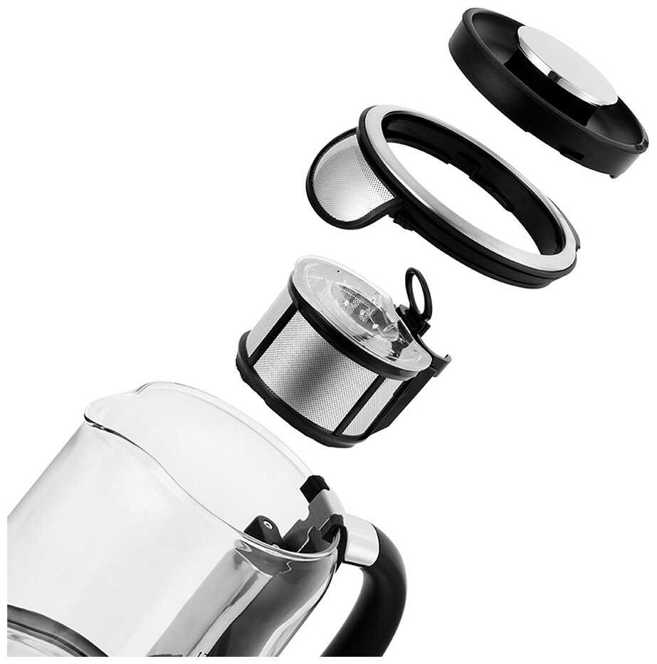 - Механизм магнитного лифта автоматически опускает и поднимает корзину с заваркой, предотвращая перезаваривание и делая процесс зрелищным, особенно для гостей и детей.