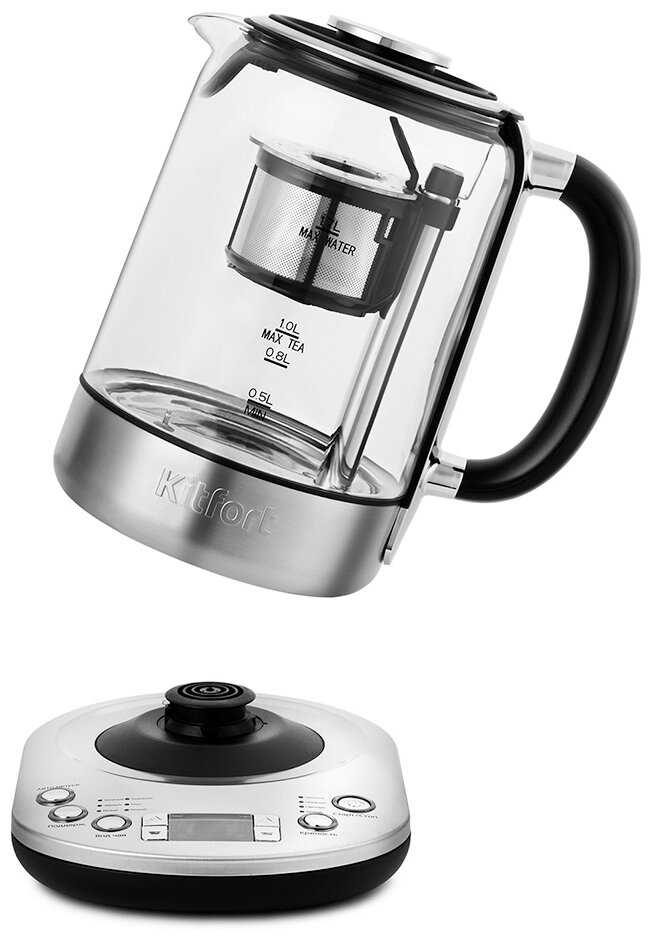 Чудо техники! Чайник-два в одном. Очень удобная и нужная вещь на кухне. Не нужны заварочные чайники. Теперь завариваю чай именно в новом чайнике Kitfort. Корзина для заварки сама опускается, сама поднимается. После заваривания настаивается, а затем подаёт сигнал. Есть все виды чая, уже для них автоматически настраивается программа. Я рада, что приобрела такую чудо-технику.